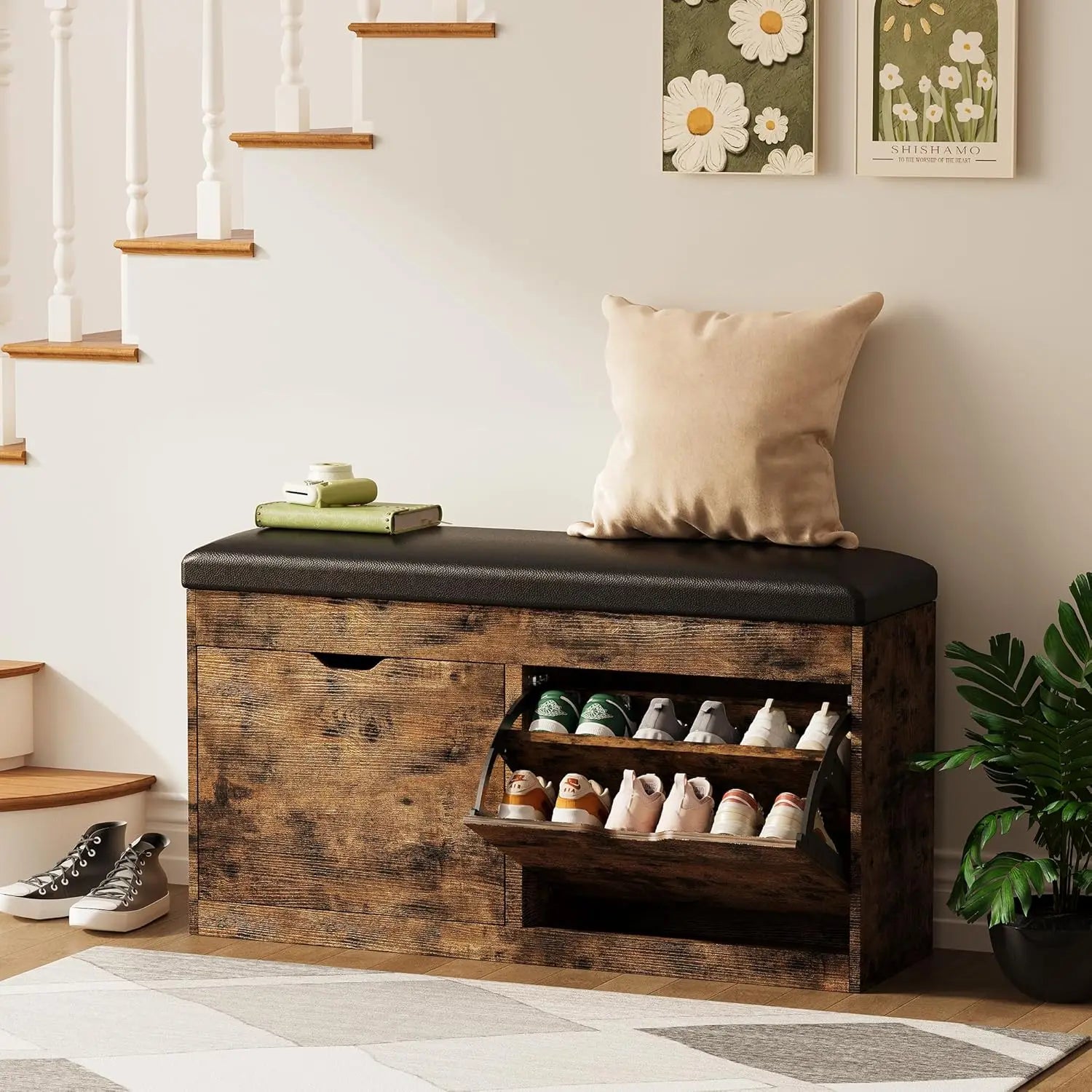 - Entryways and foyers where you need immediate shoe storage without sacrificing seating for guests or family members.