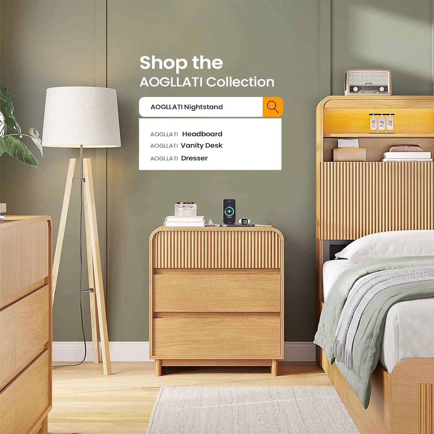 Experience timeless minimalism with the Fluted Nightstand With Charging Station in Black. This Modern Morocco-inspired piece blends sculpted curves with wave-patterned fluted panels, delivering a three-drawer nightstand that is as functional as it is striking.
